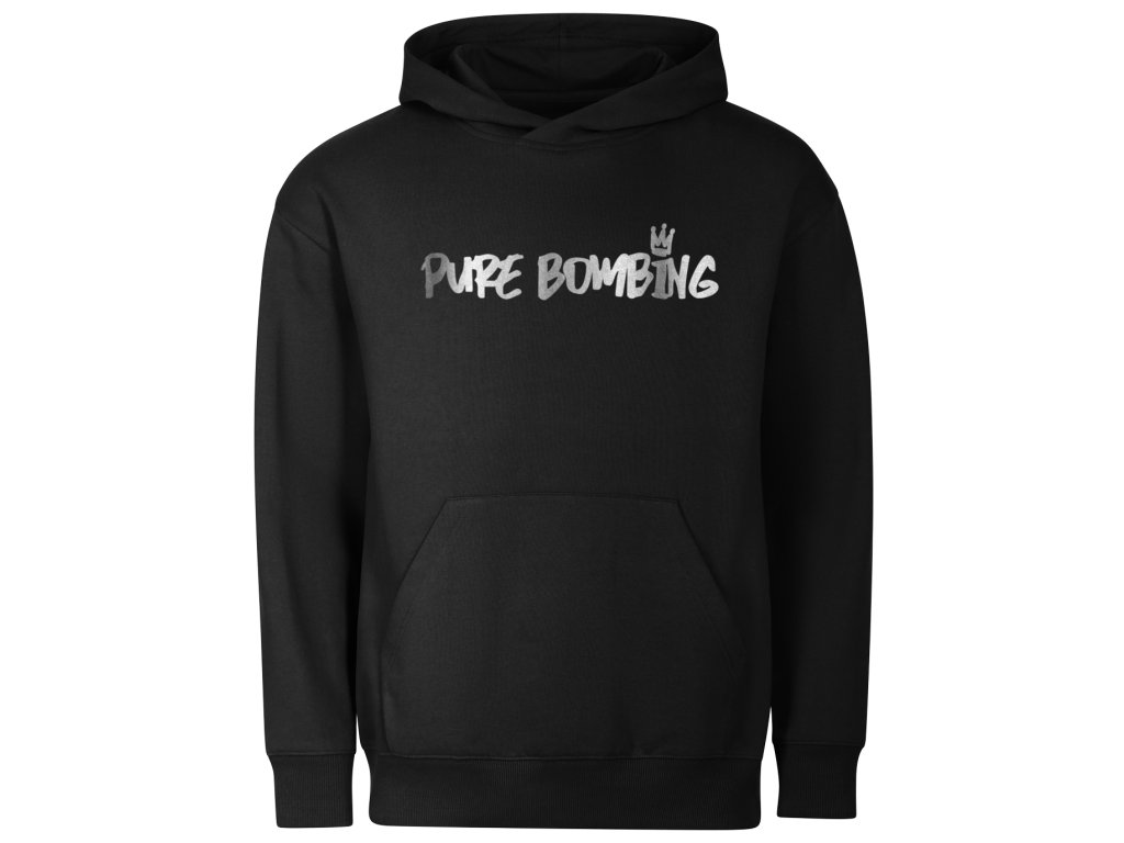Pohodlná Unisex mikina s kapucí ve stylu klokanka s bílým logem Pure Bombing.